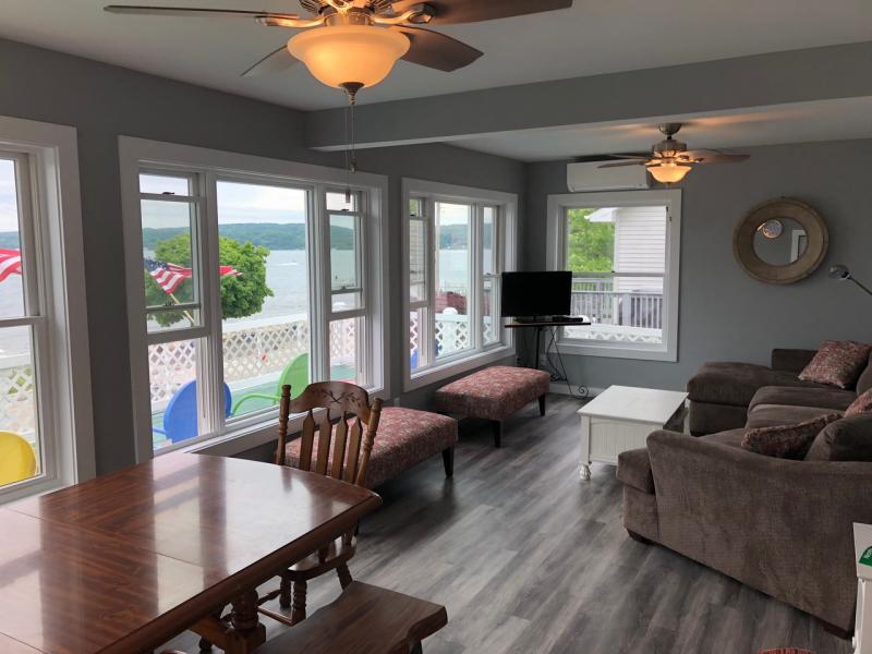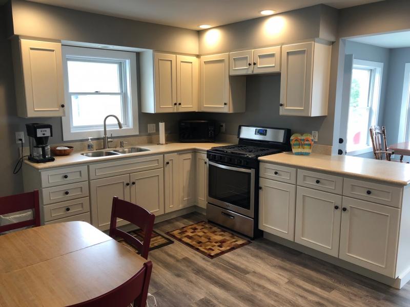 The second floor was completely remodeled in 2018 with all new windows, appliances, bathrooms, furniture and flooring. The living room features a large family table for dinners and games when the weather turns or you just need a break from the sun.