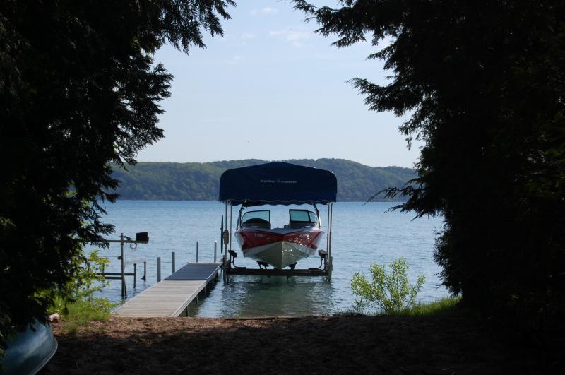 The South Shore home is located two houses over from the Lobb Road boat ramp. This quiet setting requires like minded guests. South Shore Drive is a 3 mile flat road making it great for biking, roller blading, and walking.
